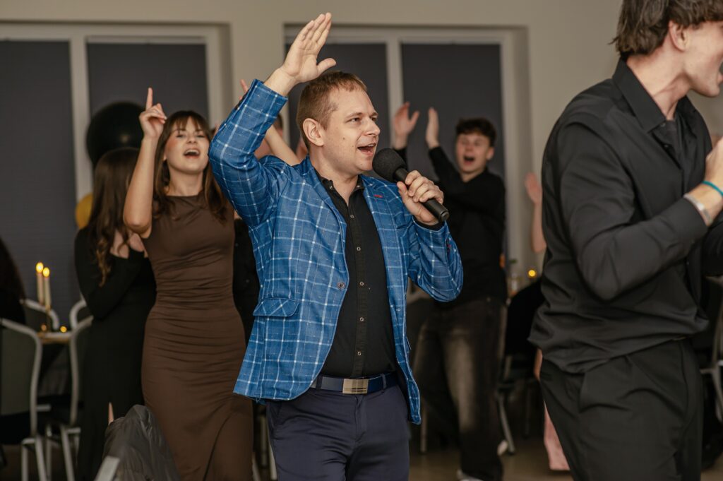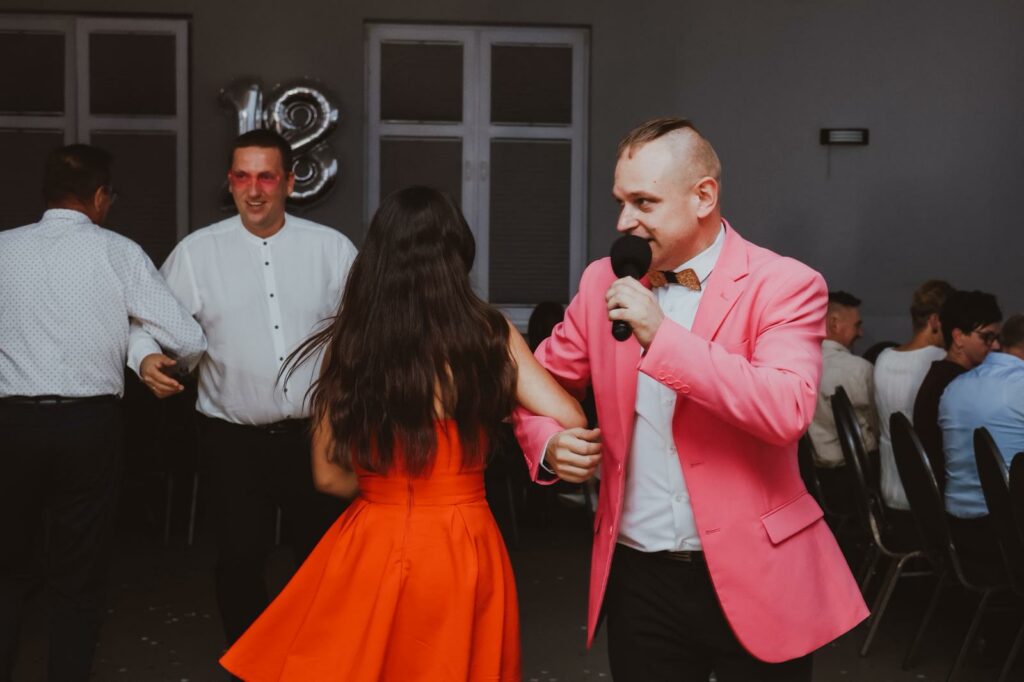 Moja charyzma i pasja gwarantują, że na Twojej imprezie nie zaznasz chwili nudy! Profesjonalnie opracowany scenariusz, oparty na bogatym repertuarze muzycznym oraz umiejętnym wykorzystywaniu interaktywnych elementów zabawy, sprawi, że każda uroczystość stanie się niezapomnianym przeżyciem, co potwierdzają liczne pozytywne opinie klientów 🙂